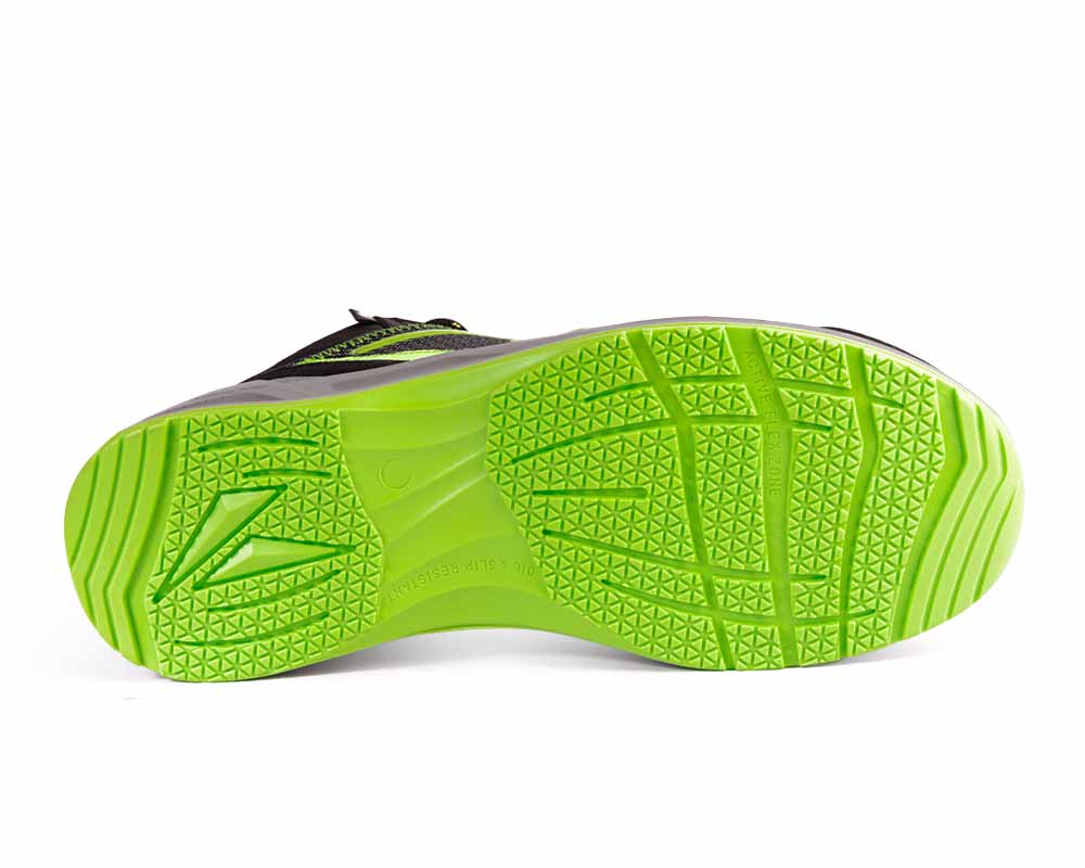 Новата модерна подметка Grip control осигурява оптимална комбинация от безопасност и комфорт дори при активна употреба на обувките. Междинният слой от полиуретан има антистатични добавки, а шокоабсорбиращите свойства омекотяват енергията при интензивни натоварвания. Външният слой е специален състав от TPU, който също притежава антистатични свойства. Благодарение на модерните технологии постигнахме оптимално тегло на подметката, което пряко влияе върху теглото на цялата обувка. Не по-малко уникална е новата разработка на подметката. 85% от протектора е съставен от малки триъгълници с равностранна форма, чиито ръбове са насочени в различни посоки. Това контролира позицията на стъпалото върху хлъзгава или неравна повърхност. Всеки ръб на такъв триъгълник уверено спира плъзгането във всяка посока. Предната част на подметката е разделена на флекс-зони за улесняване на движението. Зоната на петата има оптимална контактна площ с повърхността, което осигурява по-добър баланс в статично положение или при движение.
