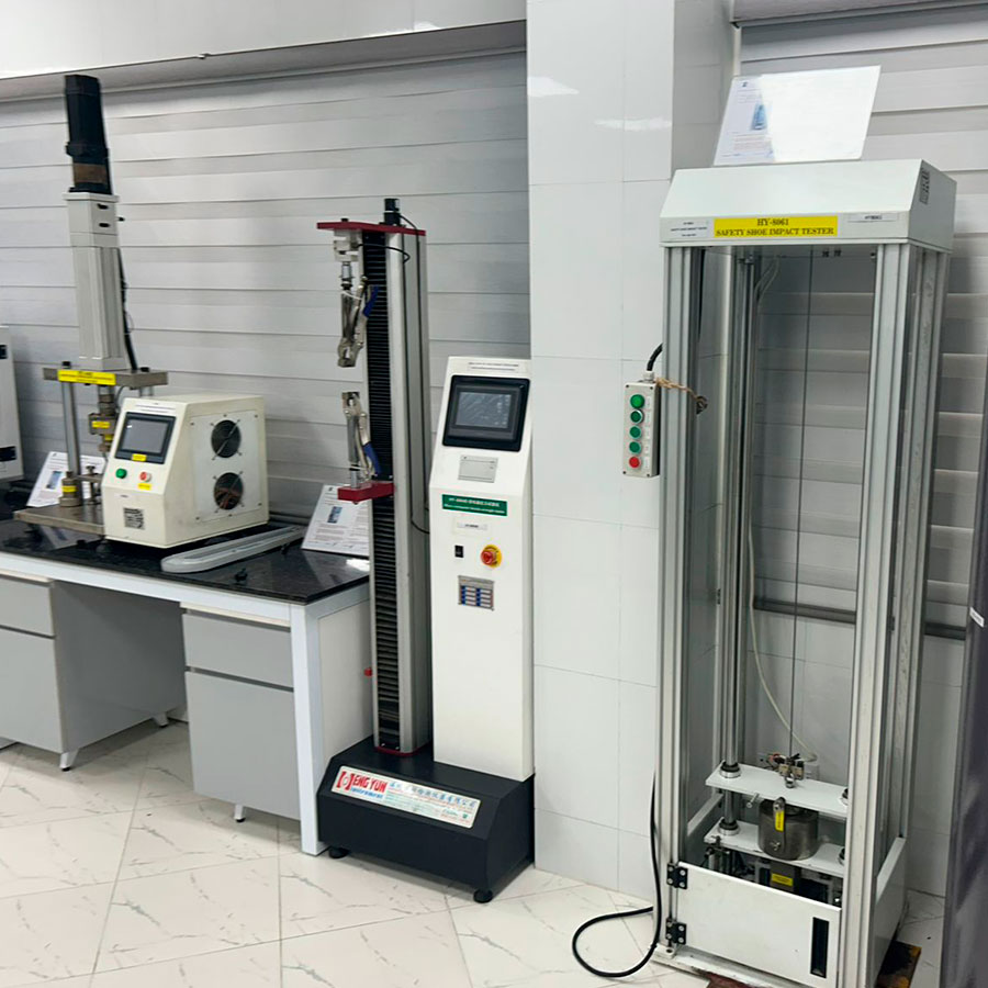 За нас безопасността не е просто дума. Производството е оборудвано със собствена експериментална лаборатория, където всеки материал и готов чифт обувки преминават през строги изпитвания за:
